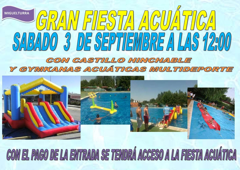 La concejalía de Deportes del Ayuntamiento de Miguelturra ha informado que el próximo sábado, 3 de septiembre, la empresa encargada de la gestión de la Piscina Municipal, Proidman, celebrará una gran fiesta acuática.