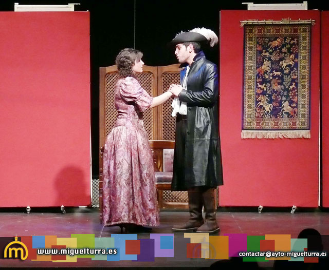 La compañía "Caravana del arte" ponía en escena el pasado sábado la obra "La dama boba" de Lope de Vega. La cita, que tenía lugar a partir de las 20:30 horas en el escenario del Teatro Cine Paz de Miguelturra, congregaba a numeroso público que quiso disfrutar de esta comedia del Siglo de Oro de la Literatura Española.