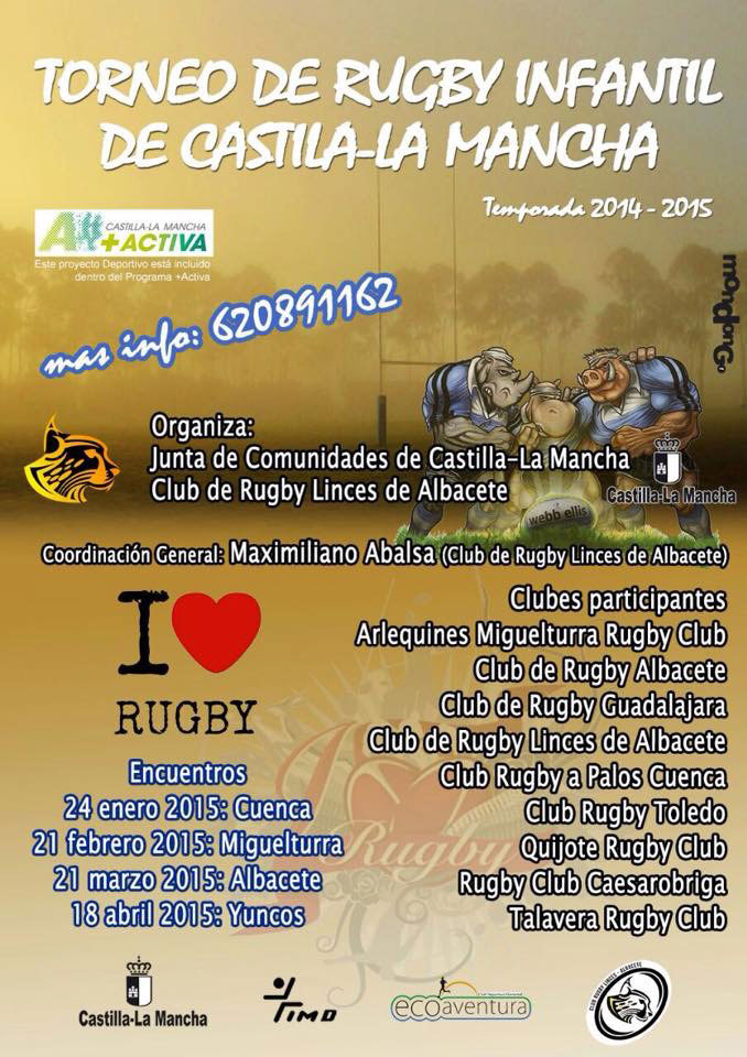 La Junta de Comunidades de Castilla La Mancha ha organizado un Torneo de Rugby Infantil a nivel regional, en colaboración con el Club de Rugby Linces de Albacete, IMD y Ecoaventura, dentro del programa Más Activa, y que se desarrollará en cuatro encuentros a celebrar en diversas fechas entre enero y abril de 2015 y en el que participa el equipo local de las Escuelas Deportivas Arlequines de Miguelturra Rugby Club.