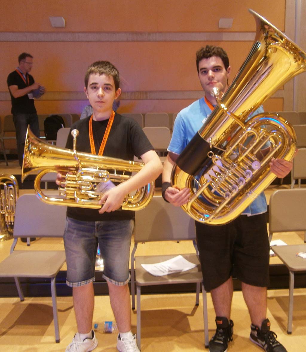 Los músicos de la Banda Sinfónica Ángel Ocaña y Pablo Domínguez semifinalistas en el Festival Aetyb de Barcelona.