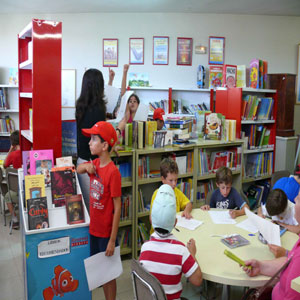 Los niños de la escuela de verano, visitan la biblioteca municipal.