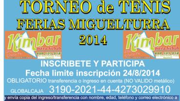 Del 6 de octubre al 16 de noviembre. Organizado por el Club de Tenis de Miguelturra en colaboración con el área de Deportes del Ayuntamiento. Inscripciones abiertas hasta fin de septiembre.
