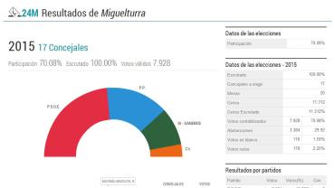 Con una participación del 70,08 por ciento, el PSOE consigue un 45,60 por ciento de los votos, PP 29,61 por ciento, IU-Ganemos un 15,90 por ciento, y, finalmente, Ciudadanos un 7,39 por ciento.