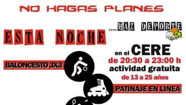 Deportes Un centenar de jóvenes participaron en el CERE, en "No hagas planes. Esta noche haz deporte". El concejal de Deportes también ha valorado otras actividades deportivas realizadas recientemente. Galería de imágenes al final de la noticia.