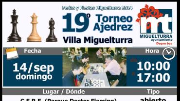 Deportes Decimonoveno Torneo de Ajedrez Villa de Miguelturra. Dentro de la programación de Deportes en las Ferias y Fiestas Patronales. Domingo 14 de septiembre.