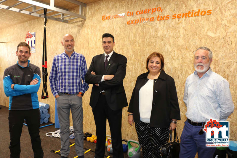 El alcalde de Miguelturra, Román Rivero, acompañado por el concejal de Deportes, Eduardo Zurita, ha realizado una visita guiada a una nueva sala de entrenamiento que se ha ubicado en las instalaciones del Pabellón Municipal de Deportes de la localidad. En dicha visita también han estado presentes Pedro Zarco, director de área de La Caixa y Nuria López, directora de la oficina de La Caixa en Miguelturra puesto que esta entidad, a través de su obra social, ha contribuido económicamente con esta nueva instalación donde han aportado 3.000 euros y se ha realizado gracias al personal de servicios y obras del ayuntamiento de Miguelturra.