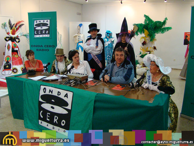Como viene siendo tradición cada martes de carnaval la emisora de radio "Onda Cero" traslada su estudio hasta las puertas del ayuntamiento para realizar un programa en directo monográfico de los carnavales. Este año, de nuevo, la emisión se ha hecho en colaboración con la emisora municipal del Ayuntamiento Radio Miguelturra, por tanto los oyentes de ambas emisoras han conectado con el mismo programa de 12.30 hasta las 14.00.h y de 19.00 a 20.00, Silvia Fernández-Pacheco y Javier Ruiz, han puesto la voz por parte de Onda Cero y Ángel Navarro y Teresa Rodado lo han hecho por parte de Radio Miguelturra.