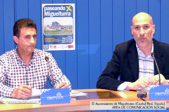 El concejal de Deportes del Ayuntamiento de Miguelturra, Eduardo Zurita y el presidente de la Asociación Cultural y de Senderismo "Los Correcaminos" de Miguelturra, han presentado en rueda de prensa el programa "Paseando por Miguelturra, que se compone de tres actividades: una en Primavera, otra en Verano nocturna y otra para Ferias.