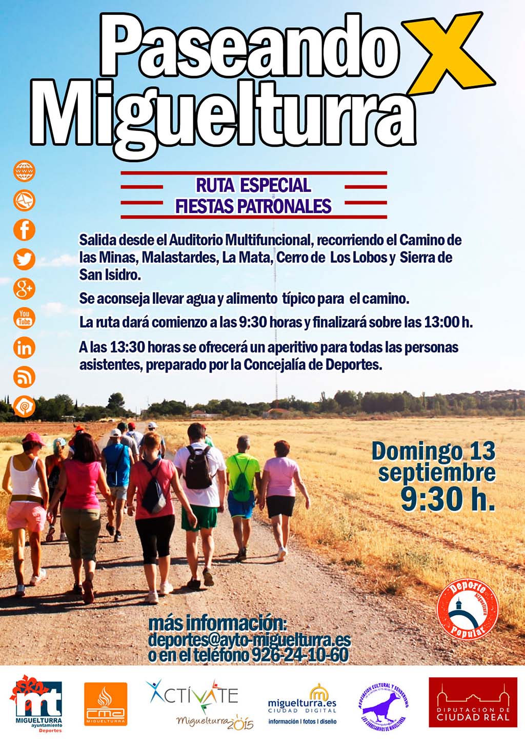 Dentro de las actividades programadas por el Área de Deportes del Ayuntamiento para las Ferias y Fiestas 2015, dentro del programa "Deporte Popular", se desarrollará el domingo 13 de septiembre una ruta especial de ferias en colaboració con la Asociación Cultural y Deportiva Correcaminos, Diputación Provincial de Ciudad Real y portal web www.miguelturra.es.