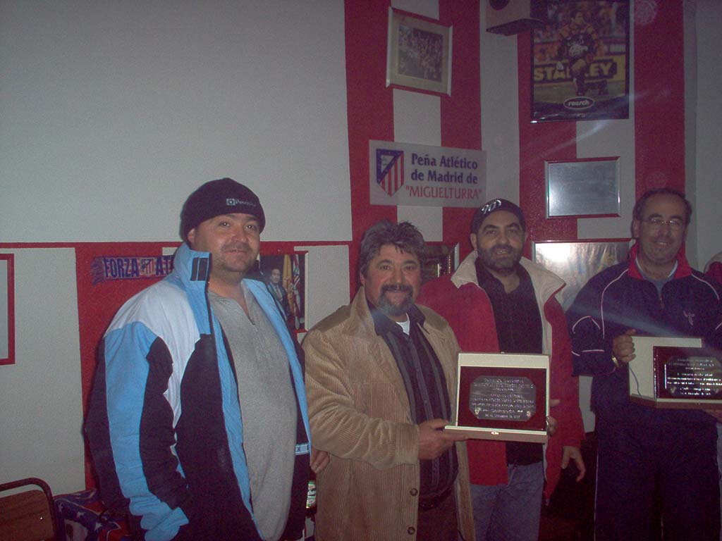 La jornada finalizó en la sede de la peña del At. Madrid en donde ambas peñas invitaron a los asistentes a un vino y fueron entregadas unas placas conmemorativas del acto por parte del concejal de deportes Manuel Viso.