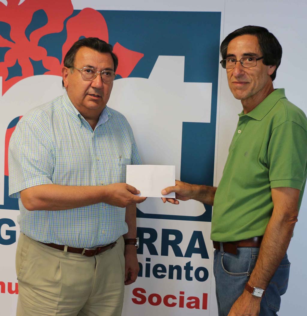 El pintor Julián Peco entrega 400 euros a Cáritas Parroquial.
