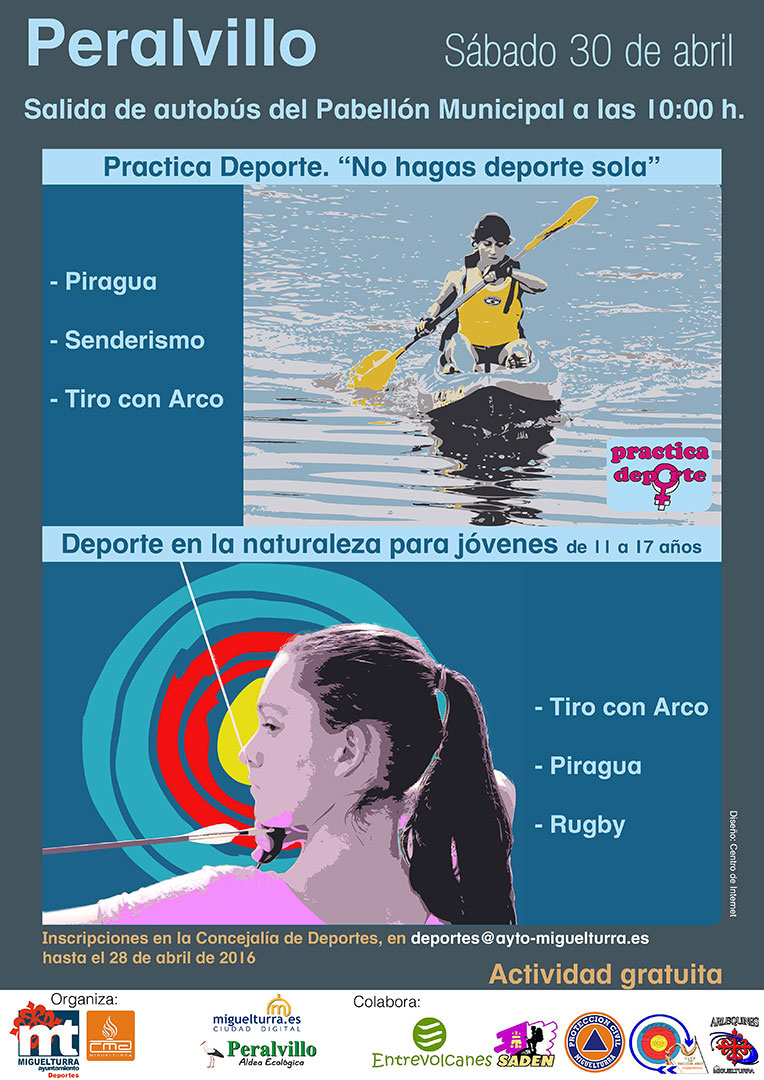 El sábado 30 de abril la concejalía de Deportes de Miguelturra realizará en Peralvillo "Aldea Ecológica" una serie de actividades deportivas dentro del programa "Practica Deporte, no hagas deporte sola" y también para jóvenes y personas adultas de cualquier género.