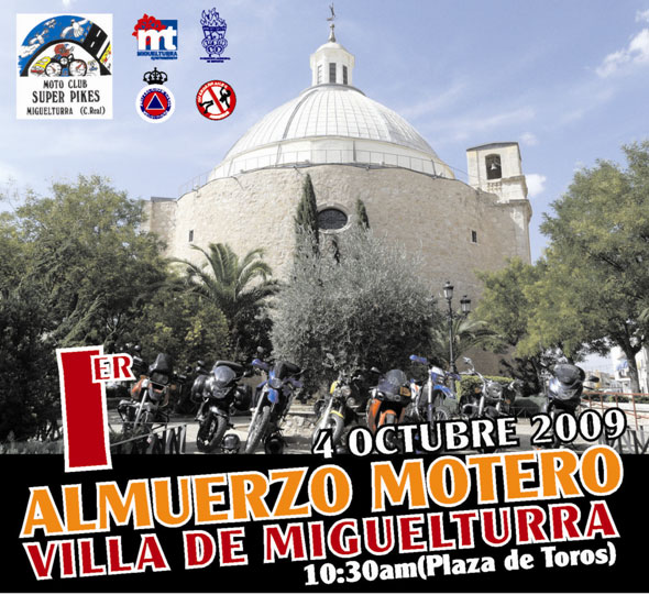 Primer almuerzo motero "Villa de Miguelturra" organizado por el Moto Club Super Pikes con el patrocinio del Ayuntamiento de Miguelturra el próximo domingo 4 de octubre.