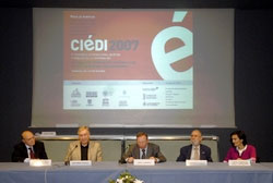 Carlos Soria, Presidente del Comité Científico, en la presentación del Quinto Congreso CIÉDI. La disposición de la mesa facilitó el coloquio a lo largo de las dos jornadas.