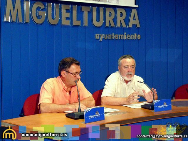 El alcalde de Miguelturra, Román Rivero y el concejal de Obras Públicas Municipales y Urbanismo del Consistorio, Jesús Sánchez informaban en rueda de prensa celebrada el pasado martes 24 de agosto en el Salón de Plenos del Ayuntamiento sobre la urbanización del sector A-01 en la localidad.