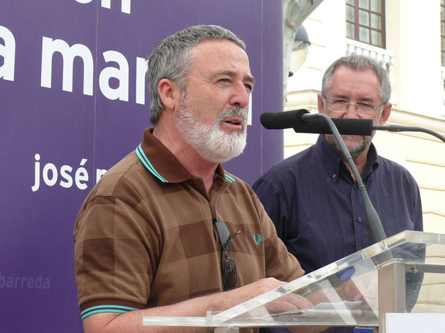 El candidato socialista a la alcaldía de Miguelturra, Román Rivero, intervenía en el acto público de esta formación política celebrado en la mañana del domingo en la plaza de la Constitución y que contó con la asistencia e intervención del candidato a la Junta de Comunidades, José María Barreda.