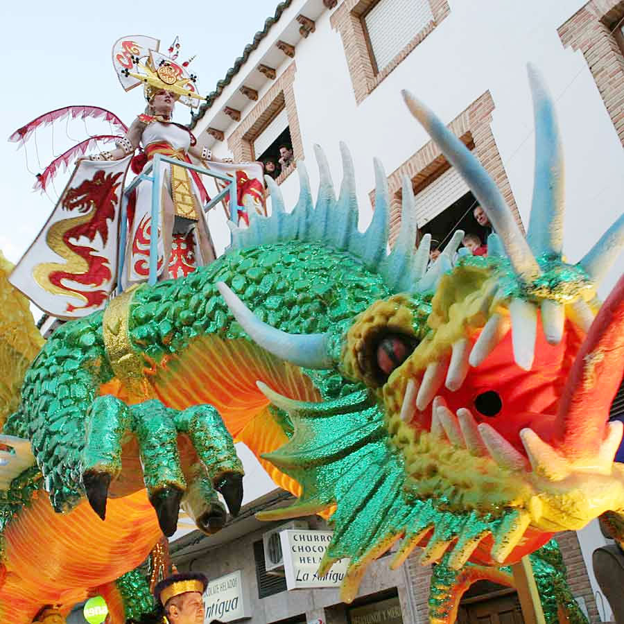 ¿Quién dijo que el concurso de carrozas de Miguelturra no es tan espectacular como el de Ciudad Real? El de este Domingo de Piñata no desmereció en nada al de la capital, paradigma de los desfiles de carnaval de la región. Ni por número de carrozas, murgas y comparsas: 28 en Miguelturra frente a poco más de treinta en Ciudad Real, ni por espectáculo, colorido y ambiente, el desfile de la capital superó al churriego. El lejano Oriente fue la estrella.