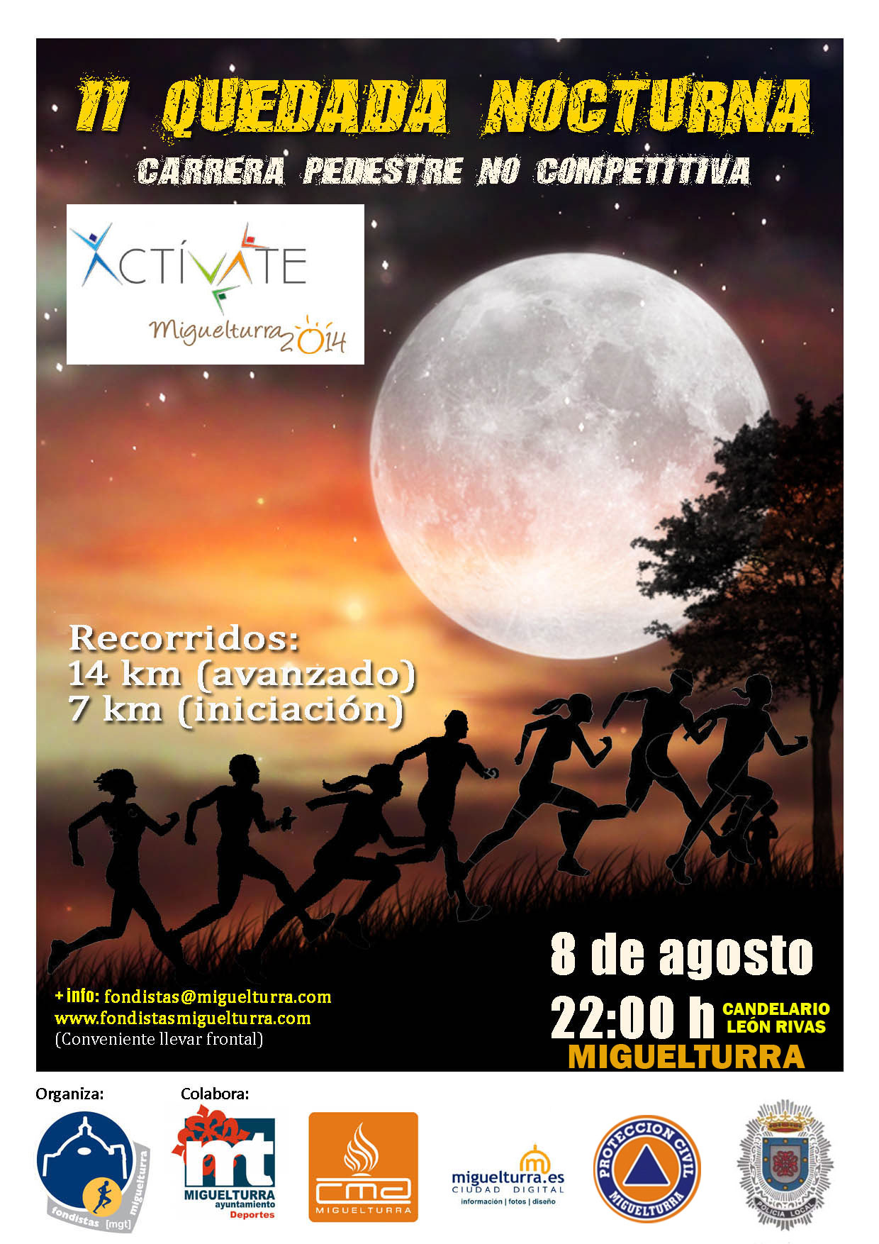 Por otra parte, la carrera se celebrará el 8 de agosto con luna llena, a las diez de la noche y el lugar de encuentro será el estadio Candelario Leon Rivas donde habrá dos itinerarios. El primero de ellos, es el más avanzado que consta de 14 kilómetros y luego otro itinerario de iniciación que tendrá 7 kilómetros, "queremos recordar que los dos recorridos son sencillos y se pueden realizar sin ningún tipo de preparación inicial". "Así cualquier persona que haya corrido de manera habitual está preparada para cualquiera de las rutas que elija".