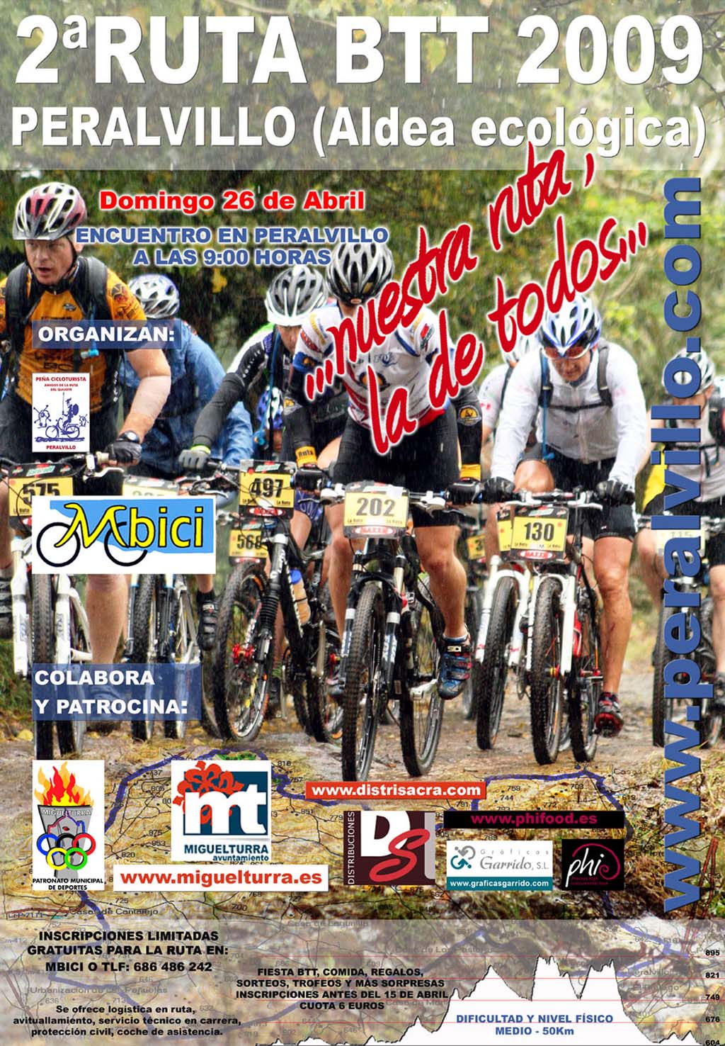 El domingo 26 de de abril se celebrará en el anejo de Peralbillo la segunda Ruta BTT a partir de las 9 horas en el que coincidirán todos los y las amantes del deporte de bicicleta en montaña y campo a través, tal y como atestiguan las imágenes del año pasado incluidas hace poco en este portal web en sus galerías de deportes.