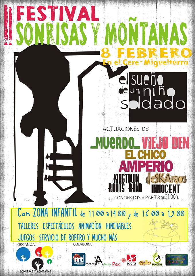 Nueva actividad para recaudar fondos del actual proyecto de Sonrisas y Montañas "Sueños de un niño soldado", a través del cual se pretende recaudar fondos para la construcción de un colegio, con dos aulas, con capacidad cada una de ellas de 45 a 50 niños, en El Congo, destinado a niños que son reclutados desde su infancia como niños soldado y cuyo coste es de unos 13.000 euros.
