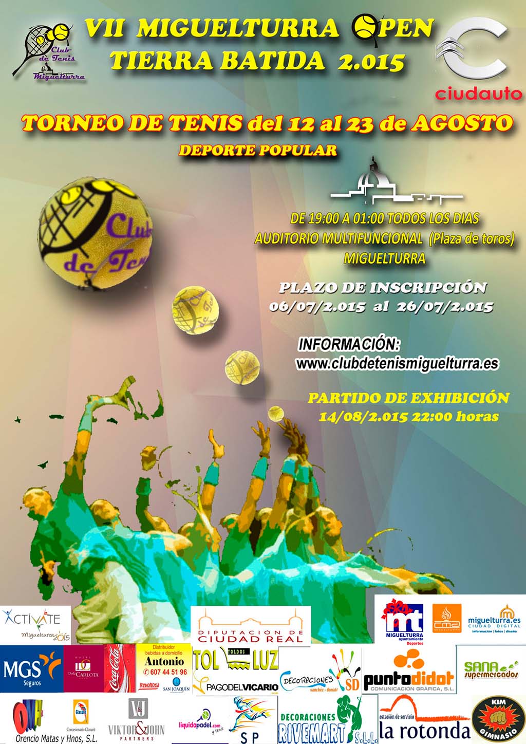 Este evento deportivo de tenis de verano está enmarcado dentro del programa "Actívate 2015" del Ayuntamiento de Miguelturra, disputándose los partidos en entre las 19:00 horas y la 1 de la madrugada, y con un partido de exhibición el 14 de agosto a las 10 de la noche.