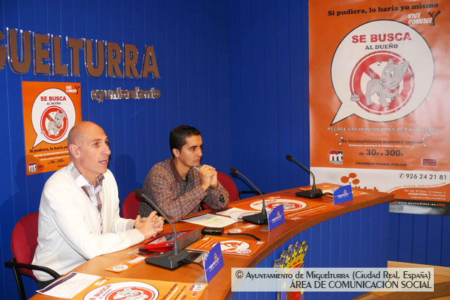 El concejal de Sanidad, Eduardo Zurita, y el concejal de Medio Ambiente, Julián Céspedes, han presentado la campaña de sensibilización para la recogida de deposiciones de las mascotas denominada "Si pudiera lo haría yo mismo. Recoge las deposiciones de tu mascota". Una iniciativa enmarcada en el proyecto "Vive y Convive" y que se incluye dentro del plan estratégico de salud municipal que está llevando a cabo el ayuntamiento de miguelturra, en esta ocasión a través de las Concejalías de Sanidad, Medio Ambiente, Servicios, Educación, Seguridad Ciudadana y Comunicación Social, con la colaboración de la Diputación Provincial de Ciudad Real. Una campaña de concienciación ciudadana que tiene un coste para el ayuntamiento de entorno de "600 a 1000 euros".