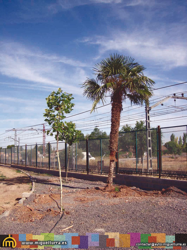 En el caso de las Palmáceas, se está procediendo a su poda, protección y trasplante directamente a su nueva ubicación, en varios puntos de la localidad como son los jardines entorno al Auditorio municipal, en el Parque de las calles Agua y Justicia y en la vía verde calle Toneleros.