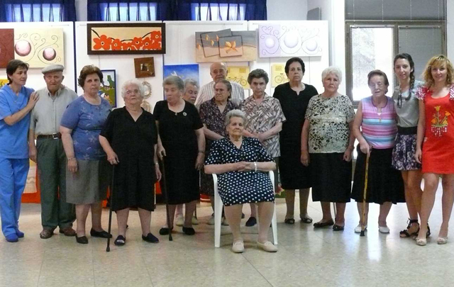 Usuarios y usuarias del Servicio de Estancias Diurnas visitan la exposición de trabajos de la Universidad Popular.