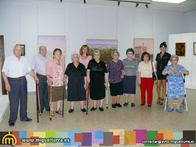 Usuarios del Servicio de Estancias Diurnas (S.E.D.), que acoge el Centro de Día, dependiente del área de Bienestar Social del Ayuntamiento de Miguelturra, han visitado la exposición de los trabajos de seis de los monitores de los cursos de la Universidad Popular.