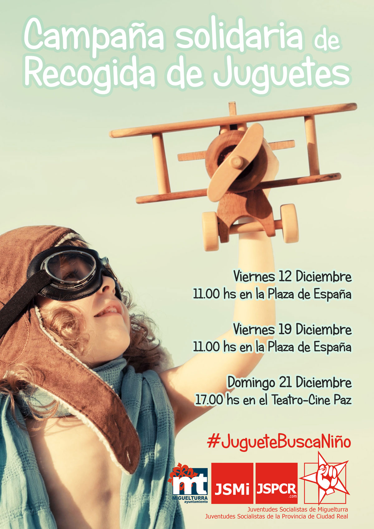 Un año más, Juventudes Socialistas de Miguelturra y Juventudes Socialistas de la Provincia de Ciudad Real lanzan una campaña solidaria para ayudar en estos tiempos difíciles a aquellas familias de Miguelturra que peor lo están pasando. Por ello, vuelven a salir a la calle para que ningún niño/a se quede sin juguetes estas Navidades.