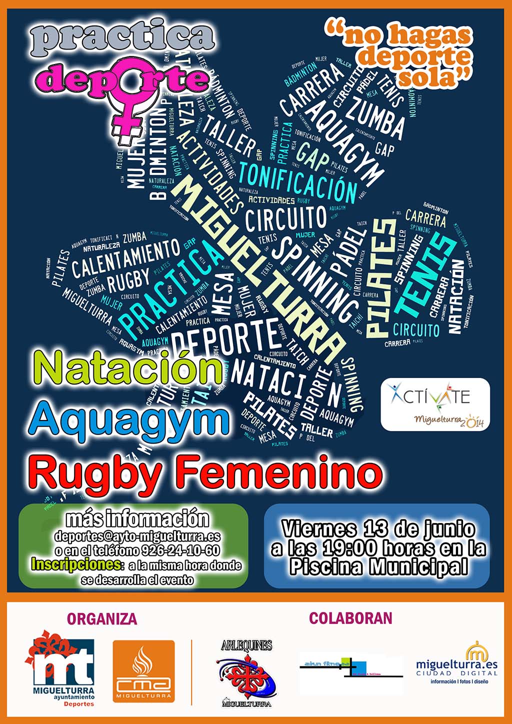 La Concejalía de Deportes del Ayuntamiento de Miguelturra, en colaboración con Airun Fitness y Arlequines Miguelturra, presenta una nueva jornada de "Practica deportes. No hagas deporte sola"; una iniciativa cuyo objetivo es la promoción del deporte femenino en la localidad y que se incluye dentro del programa "Actívate en Verano".