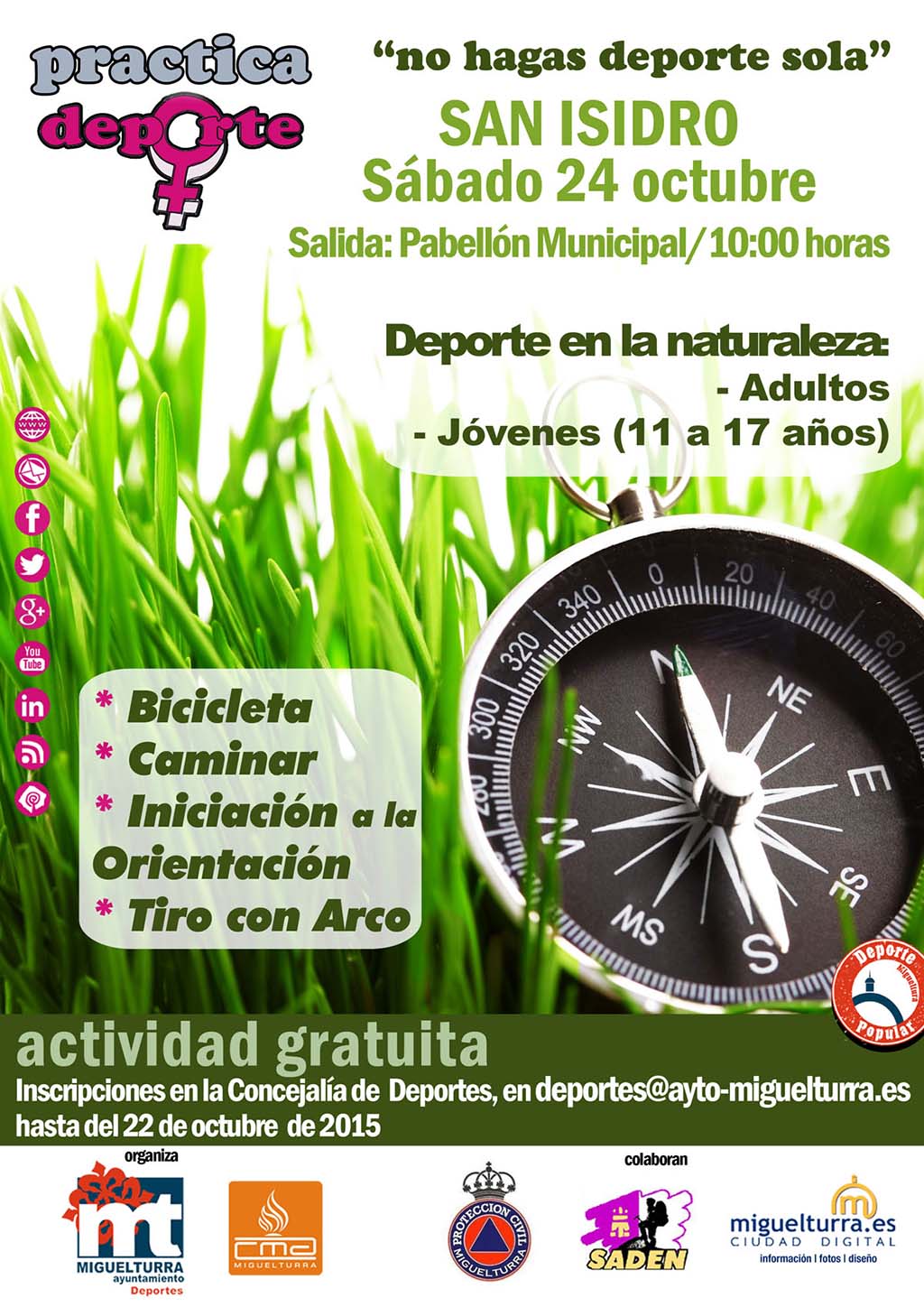 Este evento gratuito, en el que podrán participar personas adultas de ambos géneros y jóvenes entre 11 y 17 años, contendrá actividades de bicicleta, caminar por San Isidro y zonas adyacentes, iniciación a la orientación y tiro con arco, actividad de "Deporte Popular". Éste dará comienzo a las 10 de la mañana en el Pabellón Municipal de Miguelturra, y desde ahí a la Sierra de San Isidro de nuestra localidad.